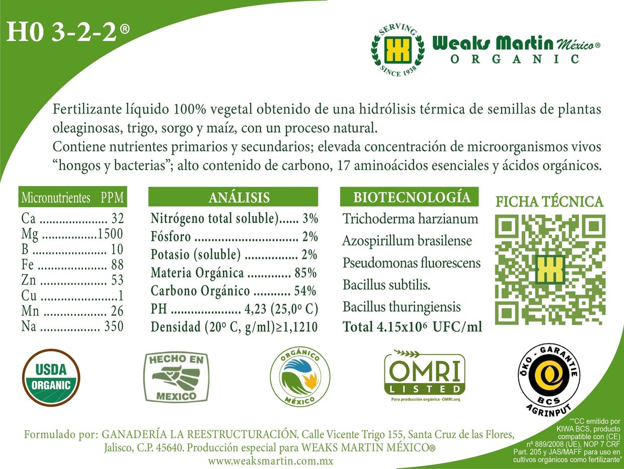 Es un fertilizante líquido 100% orgánico que se obtiene de una hidrólisis térmica de semillas de plantas oleaginosas, trigo, sorgo y maíz, con un proceso natural.